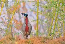 红腹角雉属于鸡形目雉科,雄鸟体羽及两翅主要为深栗红色,满布具黑缘的灰色眼状斑,下体灰斑大而色浅。雌鸟上体灰褐色,下体淡黄色,杂以黑、棕、白斑。全部>>