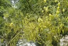 槐 Schott),豆科槐属的落叶乔木。树皮暗灰色,树冠球形,老时则呈扁球形或倒卵形。枝叶密生,羽状复叶。圆锥花序顶生,花蝶形,夏季开黄白色花,略具芳香。荚果肉质,念珠状不开裂,黄绿色,常悬垂树梢,…全部>>