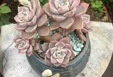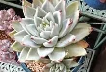 紫珍珠是景天科石莲花属的多年生肉质草本植物。植株中小型;叶片肉质,匙形,呈莲座状紧密排列;叶片粉紫色,叶缘呈粉白色,光照充足时颜色亮丽,不足时叶色会呈现深绿色或灰绿色,叶面光滑,被轻微白粉,…全部>>