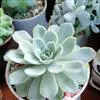 紫珍珠是景天科石莲花属的多年生肉质草本植物。植株中小型;叶片肉质,匙形,呈莲座状紧密排列;叶片粉紫色,叶缘呈粉白色,光照充足时颜色亮丽,不足时叶色会呈现深绿色或灰绿色,叶面光滑,被轻微白粉,…全部>>