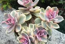 紫珍珠是景天科石莲花属的多年生肉质草本植物。植株中小型;叶片肉质,匙形,呈莲座状紧密排列;叶片粉紫色,叶缘呈粉白色,光照充足时颜色亮丽,不足时叶色会呈现深绿色或灰绿色,叶面光滑,被轻微白粉,…全部>>