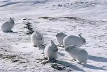 北极兔, 是兔科、兔属的哺乳动物。北极兔体型巨大,头比一般的兔子大且长,耳朵较小,腿长,四肢非常有力灵活,夏季身体背面浅灰色,冬季身体背面白色。北极兔属于群居动物,鼻子、耳朵灵敏,不羞怯胆小,易于驯服,…全部>>