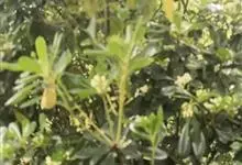 海桐 W. T. Aiton)是海桐科海桐属常绿灌木或小乔木;嫩枝被褐色柔毛;叶聚生于枝顶,浓密且有光泽;伞形花序顶生,花为白色,气味芳香;蒴果呈球形,三瓣裂开,红色;花期3-5月,果熟期9-10月。…全部>>