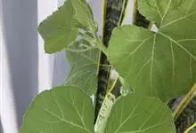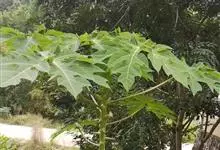 番木瓜,番木瓜科番木瓜属的常绿软木质小乔木,高达10米,具有乳汁;茎不分枝或有时于损伤处分枝;叶大且聚生于茎顶,近似盾形,叶柄中空;花单性或两性,有些品种雄株偶尔生两性花或雌花,…全部>>
