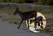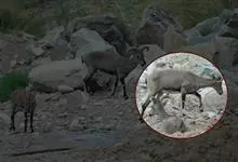 岩羊是偶蹄目牛科岩羊属哺乳动物。颜色与岩石相像,两性皆具角,雄羊角大而弯曲,角外表具不明显的横棱且体壮实,雌羊角短小;头较小,眼大,耳小,颏下无须;体背面为棕灰或石板灰色略有蓝色反光,…全部>>