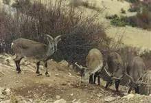 盘羊:雄性肩高可达120厘米,体重可达200千克。雄性的弯角粗大,长达1米以上,向下扭曲呈螺旋状,外侧有环棱;雌性的角非常短,而且弯度不大。毛的颜色从淡棕色至白灰色,胸、腹部的颜色浅一些。脖子白色,…全部>>