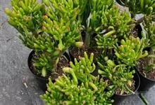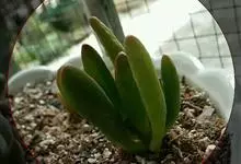 筒叶花月,是景天科青锁龙属的多年生草本植物。植株多分株,灌木状,茎较粗壮,圆柱形,表皮灰褐色;叶片肉质,互生,呈圆筒状,簇生于茎或分枝顶端,叶端呈斜截形,截面为椭圆形;花呈星状,淡白色;花期秋季。…全部>>