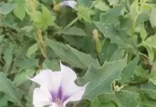 曼陀罗,茄科曼陀罗属一年生大型草本植物,全株光滑。有臭气;叶呈广卯形,边缘具不规则波状浅齿裂;花单生于枝杖间或叶腋,直立,有短梗;花萼是筒状裂片三角形,颜色为白色或淡紫色;果实为蒴果卵状,…全部>>