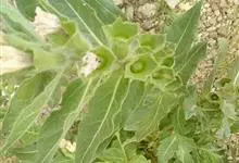 天仙子,是茄科天仙子属多年生草本植物,二年生草本,全体被黏性腺毛;根较粗壮,一年生的茎极短,自根茎发出莲座状叶丛,卵状披针形或长矩圆形,茎生叶卵形或三角状卵形,裂片多为三角形,顶端钝或锐尖,…全部>>
