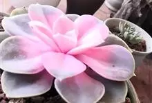紫珍珠是景天科石莲花属的多年生肉质草本植物。植株中小型;叶片肉质,匙形,呈莲座状紧密排列;叶片粉紫色,叶缘呈粉白色,光照充足时颜色亮丽,不足时叶色会呈现深绿色或灰绿色,叶面光滑,被轻微白粉,…全部>>