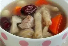 鸡爪8个,香菇10克,冬笋15克,火腿15克,熟鸡油10克,精盐2克,味精1克,绍酒10克,葱姜汁5克,鸡汤1000克。 全部>>