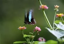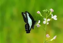 青带凤蝶Graphium sarpedon ,又名青凤蝶,是最普遍的中型凤蝶,飞行速度很快。青带凤蝶的翅膀中央有许多浅蓝色的斑点,很整齐地排列成一条直线。这些斑点由上而下逐渐变大,就像一条青色的带子。全部>>