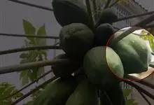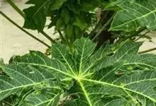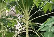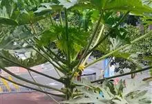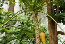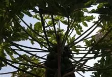 番木瓜,番木瓜科番木瓜属的常绿软木质小乔木,高达10米,具有乳汁;茎不分枝或有时于损伤处分枝;叶大且聚生于茎顶,近似盾形,叶柄中空;花单性或两性,有些品种雄株偶尔生两性花或雌花,…全部>>