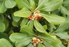 海桐 W. T. Aiton)是海桐科海桐属常绿灌木或小乔木;嫩枝被褐色柔毛;叶聚生于枝顶,浓密且有光泽;伞形花序顶生,花为白色,气味芳香;蒴果呈球形,三瓣裂开,红色;花期3-5月,果熟期9-10月。…全部>>