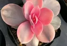 紫珍珠是景天科石莲花属的多年生肉质草本植物。植株中小型;叶片肉质,匙形,呈莲座状紧密排列;叶片粉紫色,叶缘呈粉白色,光照充足时颜色亮丽,不足时叶色会呈现深绿色或灰绿色,叶面光滑,被轻微白粉,…全部>>