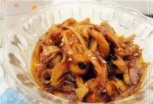 京酱肉丝,是一道知名度很高的菜肴,它是北京菜中的经典代表菜之一。制作时选用猪瘦肉为主料,辅以甜面酱、葱、姜及其它调料,用北方特有烹调技法“六爆”之一的“酱爆”烹制而成。 成菜后,咸甜适中,酱香浓郁…全部>>