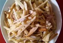 榨菜肉丝是四川省传统的名菜,属于川菜。此菜在四川家庭和中低档饭馆常年制作,原料易得,操作简便,咸淡适口,脆嫩鲜美。全部>>