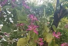羊蹄甲,别名紫花羊蹄甲、玲甲花,是豆科羊蹄甲属的一种常绿乔木或灌木。树冠开展,枝桠低垂;树皮灰色至暗褐色,近光滑。枝幼时微被灰色短柔毛,后毛脱落;叶硬纸质,近圆形,基部浅心形,…全部>>