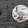 北极兔, 是兔科、兔属的哺乳动物。北极兔体型巨大,头比一般的兔子大且长,耳朵较小,腿长,四肢非常有力灵活,夏季身体背面浅灰色,冬季身体背面白色。北极兔属于群居动物,鼻子、耳朵灵敏,不羞怯胆小,易于驯服,…全部>>