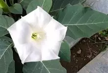 曼陀罗,茄科曼陀罗属一年生大型草本植物,全株光滑。有臭气;叶呈广卯形,边缘具不规则波状浅齿裂;花单生于枝杖间或叶腋,直立,有短梗;花萼是筒状裂片三角形,颜色为白色或淡紫色;果实为蒴果卵状,…全部>>