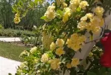 黄木香花 Rehd.)是蔷薇科、蔷薇属植物,为木香花的变型品种,攀缘小灌木,高可达6米。小叶3-5枚,稀7枚,小叶片椭圆形或长圆状披针形,先端急尖或稍钝,基部近圆形或宽楔形,边缘有紧贴细锯齿。花小型,…全部>>