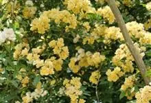 黄木香花 Rehd.)是蔷薇科、蔷薇属植物,为木香花的变型品种,攀缘小灌木,高可达6米。小叶3-5枚,稀7枚,小叶片椭圆形或长圆状披针形,先端急尖或稍钝,基部近圆形或宽楔形,边缘有紧贴细锯齿。花小型,…全部>>