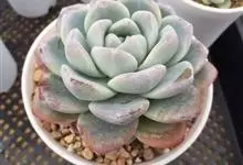 芙蓉雪莲是景天科拟石莲花属的植物。由于叶片表面覆盖着一层厚霜粉,通常呈现出白色;日照增多,温差增大后叶缘、叶尖会呈现出粉红色或橙红色。…全部>>