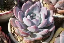紫珍珠是景天科石莲花属的多年生肉质草本植物。植株中小型;叶片肉质,匙形,呈莲座状紧密排列;叶片粉紫色,叶缘呈粉白色,光照充足时颜色亮丽,不足时叶色会呈现深绿色或灰绿色,叶面光滑,被轻微白粉,…全部>>