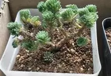 小松绿是景天科景天属植物,多肉植物,植株低矮,多分枝,株型近似球状,新枝浅绿色,以后逐渐转为灰白色,肉质叶近似针状。枝条下部的老叶容易干枯,贴在枝干上,形成类似松树皮般的龟裂,数月才脱落,…全部>>