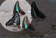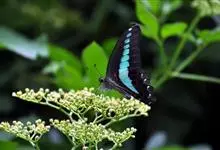 青带凤蝶Graphium sarpedon ,又名青凤蝶,是最普遍的中型凤蝶,飞行速度很快。青带凤蝶的翅膀中央有许多浅蓝色的斑点,很整齐地排列成一条直线。这些斑点由上而下逐渐变大,就像一条青色的带子。全部>>