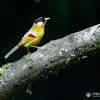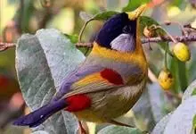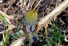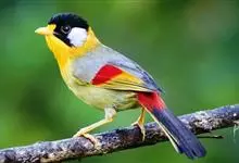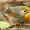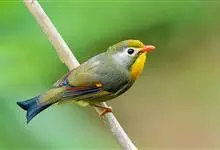 银耳相思鸟小型鸟类,体长14~18厘米。头顶黑色,耳羽银灰色,前额橙黄色;外侧飞羽橙黄色,基部朱红色,极为鲜艳、醒目。尾圆形,尾上、尾下覆羽朱红色,尾暗灰褐色,外侧尾羽橙黄色,其余上体橄榄绿或橄榄黄色。…全部>>