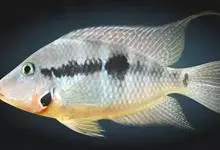 火口鱼,Cichlasoma meeki,慈鲷科丽体鱼属,出产在中美洲,鱼长15厘米以上,体型是头大身小,上半身为青色,下半身从下巴到腹部为火红色,成年鱼更鲜艳夺目。体态键壮,背鳍有迷人的光彩,…全部>>