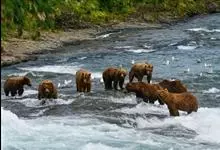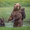 棕熊是熊科熊属哺乳动物。体形健硕,肩背隆起,身后长有一条短尾。毛色多为棕褐色或棕黄色;老年呈银灰色;幼年为棕黑色。野生条件下寿命为20—30年。棕熊分布广泛,主要分布在欧亚大陆和北美,…全部>>
