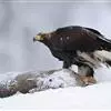 金雕:属于鹰科、雕属的猛禽。体长76-102厘米,翼展达2.3米,体重2-6.5千克。雌雄同色。未成年时,头、颈黄棕色;两翼飞羽除了最外侧三枚外基部均缀有白色,其余身体部分暗褐色;羽尾灰白色,…全部>>
