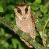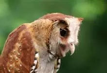 栗鸮:是鸟纲、草鸮科的猫头鹰。体长约29厘米,体重311-360克。是一种中等体型的红褐色鸮。其心形脸庞及时而竖起的“耳朵”与仓鸮甚似。上体红褐而具黑白点斑,下体皮黄偏粉具黑点,脸近粉色。虹膜深褐色,…全部>>