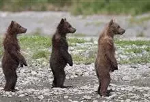 棕熊是熊科熊属哺乳动物。体形健硕,肩背隆起,身后长有一条短尾。毛色多为棕褐色或棕黄色;老年呈银灰色;幼年为棕黑色。野生条件下寿命为20—30年。棕熊分布广泛,主要分布在欧亚大陆和北美,…全部>>