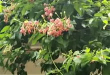 使君子 Jongkind)是使君子科、使君子属攀援灌木,叶对生,椭圆形,两面均被灰白色柔毛。穗状花序,倒挂下垂。花期夏秋。果有五棱,熟时黑色,种子白色。分布于印度、缅甸、菲律宾和中国。喜温润,深根性,…全部>>