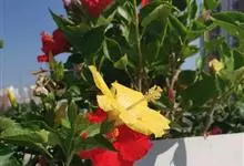 锦叶扶桑又名彩叶扶桑,为扶桑的一个变种。回叶片五颜六色,极具观赏性。植株各枝条上的叶色不尽相同,…全部>>