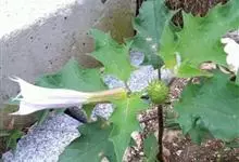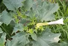 曼陀罗,茄科曼陀罗属一年生大型草本植物,全株光滑。有臭气;叶呈广卯形,边缘具不规则波状浅齿裂;花单生于枝杖间或叶腋,直立,有短梗;花萼是筒状裂片三角形,颜色为白色或淡紫色;果实为蒴果卵状,…全部>>