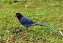 台湾蓝鹊:体长64至65厘米,翼展18至21厘米,尾长约40厘米,尾羽长占了总体长的三分之二。头、脸、颈、喉、胸都是黑色,黄色的眼珠包围黑色的瞳孔,鲜红色的鸟喙、双脚,…全部>>