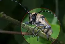 亮绿蝇,Lucilia illustris ,为丽蝇科绿蝇属动物,本种亦为中型种,最大者身长可达9mm,体色青绿,有金属光泽,本种雄性额狭,在最狭处间额存在,后中鬃2对,前缘基鳞黑色,腹部各背板无明…全部>>