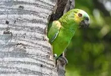 黄颈亚马逊鹦鹉是鹦形目鹦鹉科鸟类。体长38厘米,对趾型足,两趾向前两趾向后,羽色鲜艳,外表帅气;羽毛大部分是绿色;眼睛虹膜为橘色;头冠、眼喙之间和大腿处分布有黄色;在翅膀的转折处有少许红色点缀,…全部>>