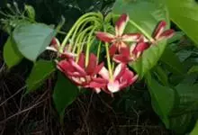 使君子 Jongkind)是使君子科、使君子属攀援灌木,叶对生,椭圆形,两面均被灰白色柔毛。穗状花序,倒挂下垂。花期夏秋。果有五棱,熟时黑色,种子白色。分布于印度、缅甸、菲律宾和中国。喜温润,深根性,…全部>>