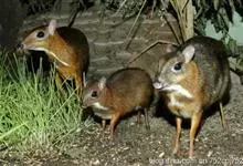 鼷鹿,别名小鼷鹿,共38个亚种。体形略比野兔大,体重1.3~2.0kg,体长420~630mm,肩高约200mm,是仅次于蹄兔目成员最小的有蹄类动物,也是鼷鹿科种体型最小的一种。面部尖长,无角,…全部>>