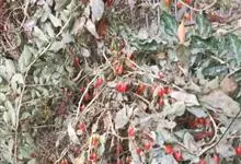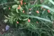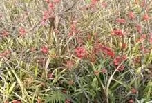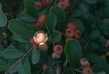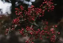 火棘 H. L. Li)是蔷薇科火棘属常绿灌木,老枝呈暗褐色;叶片呈倒卵形,边缘有钝锯齿,齿尖向内弯,两面皆无毛;叶柄短,无毛或嫩时有柔毛;花序是复伞房状,花瓣呈白色近圆形;果球近圆形,…全部>>