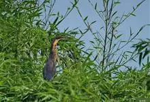 紫背苇鳽是鹭科、苇鳽属动物,为涉禽,体长约33厘米。头顶黑色,后头至尾上覆羽暗栗褐色;翅上覆羽橄榄黄色;下体浅棕黄色。多生活于水库和山脚边的稻田、芦苇丛、滩涂及沼泽草地,在西藏见于海拔2300米的农田,…全部>>