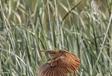紫背苇鳽是鹭科、苇鳽属动物,为涉禽,体长约33厘米。头顶黑色,后头至尾上覆羽暗栗褐色;翅上覆羽橄榄黄色;下体浅棕黄色。多生活于水库和山脚边的稻田、芦苇丛、滩涂及沼泽草地,在西藏见于海拔2300米的农田,…全部>>
