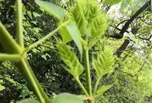 楤木 Seem.)是五加科楤木属的落叶灌木或乔木,别名刺老鸦、刺龙牙、龙牙楤木等。高2-5m,树皮灰色,疏生粗壮直刺;小枝有黄棕色绒毛,疏生细刺。二回或三回羽状复叶,…全部>>
