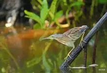 紫背苇鳽是鹭科、苇鳽属动物,为涉禽,体长约33厘米。头顶黑色,后头至尾上覆羽暗栗褐色;翅上覆羽橄榄黄色;下体浅棕黄色。多生活于水库和山脚边的稻田、芦苇丛、滩涂及沼泽草地,在西藏见于海拔2300米的农田,…全部>>