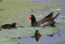 黑水鸡:是鹤形目、秧鸡科的鸟类,共有12个亚种。中型涉禽,体长24-35厘米。嘴长度适中,鼻孔狭长;头具额甲,后缘圆钝;嘴和额甲色彩鲜艳。翅圆形,第2枚初级飞羽最长,或第2枚和第3枚初级飞羽等长,…全部>>